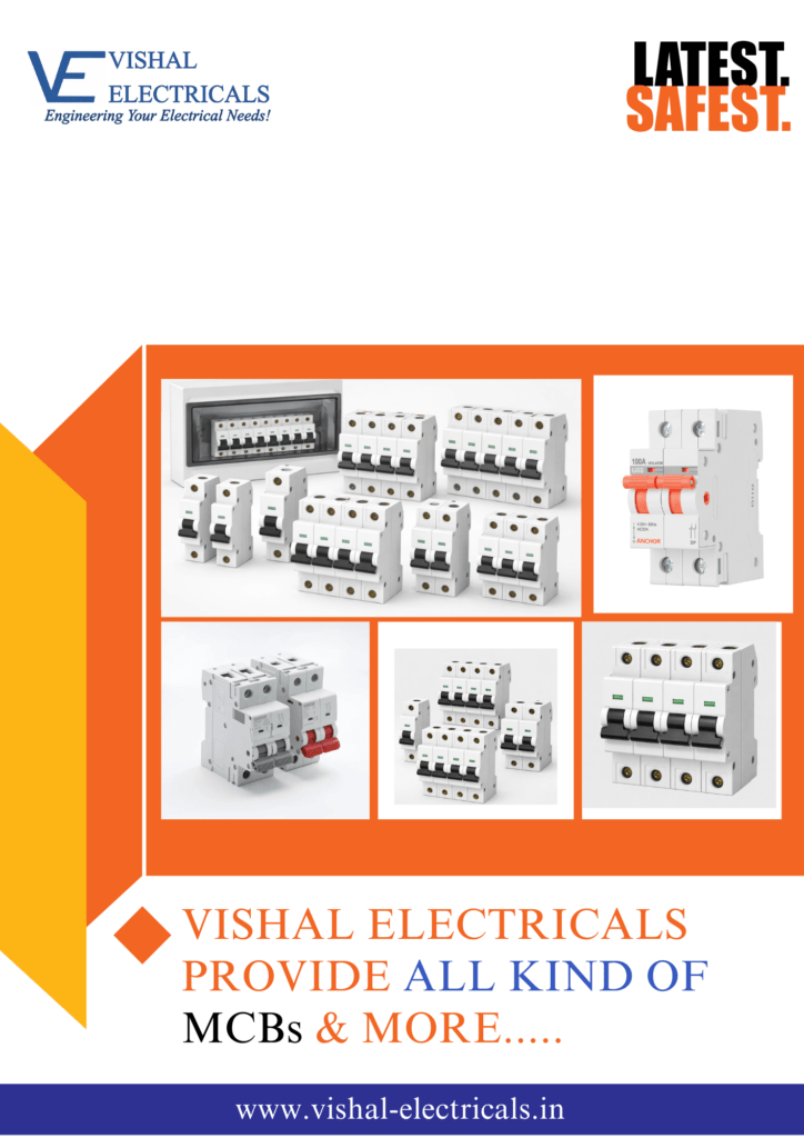 Vishal Electricals offers a premium range of Our MCBs and switchgears are sourced from reputed manufacturers and built to protect electrical systems from overload, short circuit, and electrical faults, helping prevent damage to equipment and ensuring user safety.